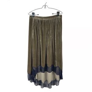 Zadig & Voltaire Joslin Velvet Midi Skirt Brown Green High Low Lace Trim Sz 36/S