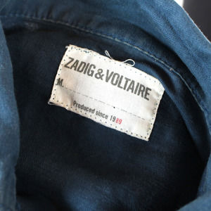 Zadig & Voltaire Kavy Blue Zip Up Linen Military Jacket XS Patch Half Sleeve Top