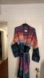 Bold knit cardigan with striking red and yellow patterns. Features a stylish design.
