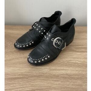 Zadig & Voltaire Leather Spiked Buckle Oxford Flat Shoe Black