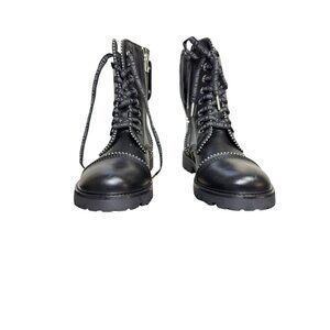 Zadig & Voltaire Leather Studded Joe Combat Boots Black New in Box