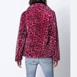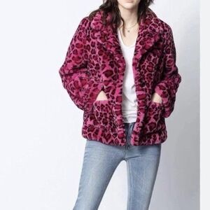 Zadig & Voltaire Lila Leopard Jacket XS Pink Black Faux Fur Button Front