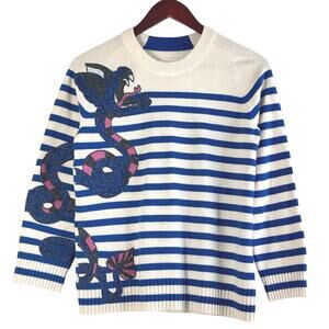 Zadig & Voltaire Lilo Bis Striped Sweater Dragon Motif Wool Cashmere Cream Blue