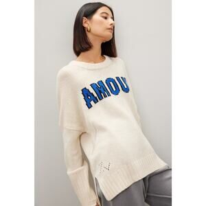 Zadig & Voltaire Malta Amour Cream Blue Varsity Wool Crewneck Sweater Size Large