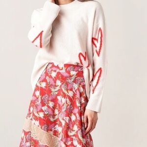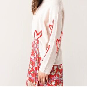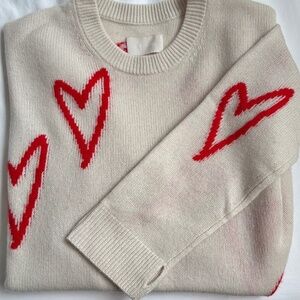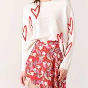 Just in time for Valentine's Day! This uber soft sweater is 100% cashmere in a lovely shade of cream with scattered crimson hearts. It was a sell-out immediately when it was introduced by Zadig & Voltaire. The sweater's name is "Marcus Marcus" and came in two color ways. Love is in the air...snap up this sought after jumper before someone else does.