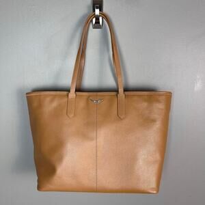 Zadig & Voltaire Mick Pebbled Leather Tote Tan minimalist wings