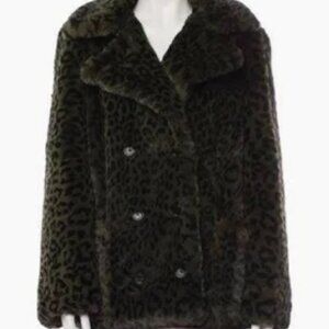 Leopard spots in plush faux fur make a fierce statement on this retro-glam Zadig & Voltaire jacket. This Animal-printed collar coat goes glamorous with an incredibly soft faux-fur finish. Color is amazing olive green/black, soft and warm! Could not capture it well, much better in person!