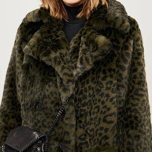 Zadig & Voltaire Miles Leo Green Leopard Gorgeous retro Luxe faux fur coat S / M