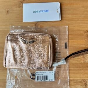 Zadig & Voltaire Mini Crushed Metal Zip Wallet in Rose Pink