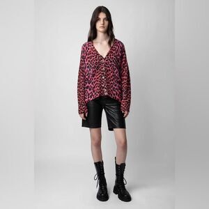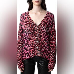 Zadig & Voltaire Mirka Leo print Leopard Cashmere Cardigan Size XS NWT