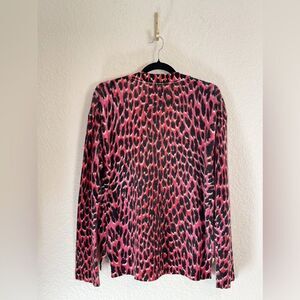So soft and cozy cashmere. Amazing animal print cardigan in pink and black. Style with leather shorts, pants, or a skirt. New. Oversized for XS. Ptp 22”, length 26”. Questions? Leave a comment below!