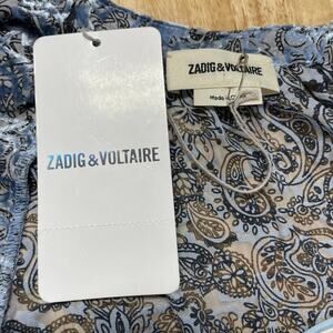Zadig & Voltaire NWT Rozane Velours Silk Blend Dress Size S Blue Velvet Burn-out