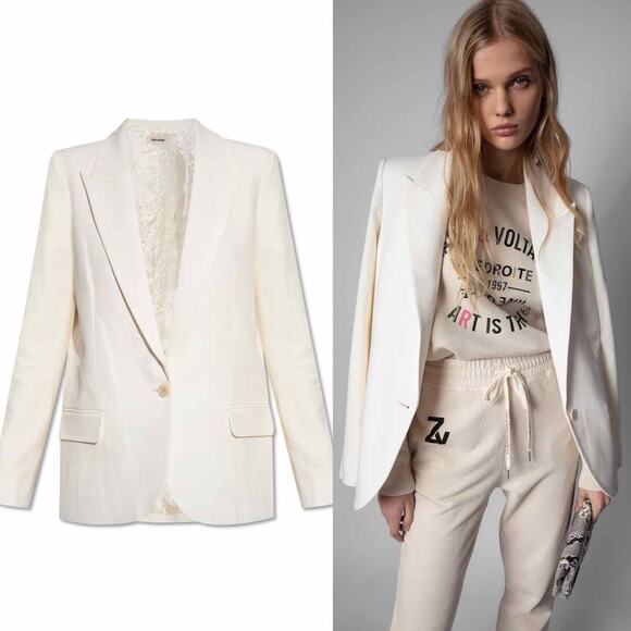 Zadig & Voltaire NWT Single Breasted Voyage Crepe Blazer Cream Sz 42