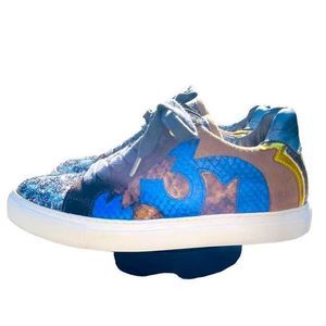 Low profile leather and textile sneakers by Zadig & Voltaire in Brown, Blue, Gold
