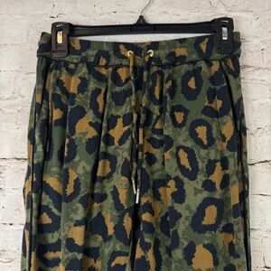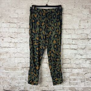 Women's Zadig & Voltaire Leopard Print Pants Size 34 which is equal to a US XS. Green, Black & Brown Leopard Print with Drawstring waistband, side slip pockets and back welt pockets in a cropped style. Made of 100% Viscose. Gently Used. Please see pictures details.