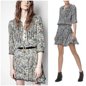 Zadig & Voltaire Raspail Crinkle Micro Floral Mini Dress Size M EUC