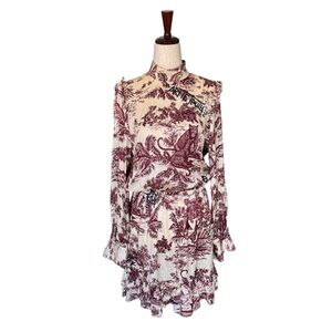 Zadig & Voltaire Rocket Jouy Print Satin Dress Red Cream Chinoiserie Ruffle $525
