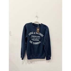 Zadig & Voltaire Rue Cambon Crew Neck Distressed Graphic Sweatshirt Navy/White M