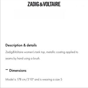 Zadig & Voltaire Samuel Foil Tank in Lagon Sz M NWT