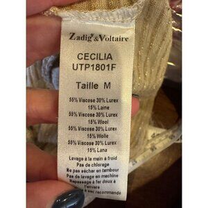 Zadig & Voltaire Shirt Women Medium Gold Metallic Striped Cecilia Henley Tee