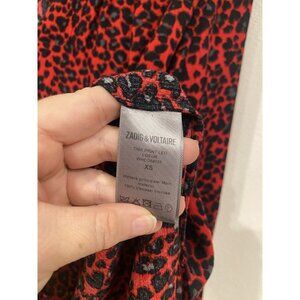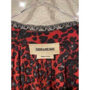 Zadig & Voltaire Shirt Womens XS Red Black Leopard Print Tink Print Leo Coeur