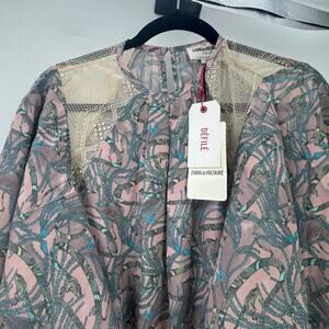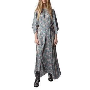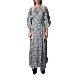 Zadig & Voltaire Silk Lace Blend Chain Print Maxi Dress Long Sleeves Size L NWT
