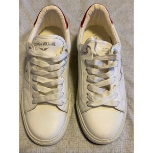 Zadig & Voltaire Size 39 9 Women White Leather Platform Sneakers Used. NO BOX. Shoes have creasing and marking around shoes. Due to lighting color may vary. Smoke free home. I tried to get the best pictures to show the condition of the item. Once you have purchased item NO RETURNS OR NO EXCHANGES. Any further questions or offers contact me. Thank you and God Bless.