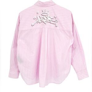 Zadig & Voltaire Tamara Pop Raye Beaded pink oxford Button-Up Shirt NWT large