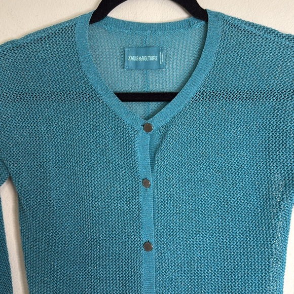 Zadig & Voltaire Teal Open Knit Cardigan Size Small