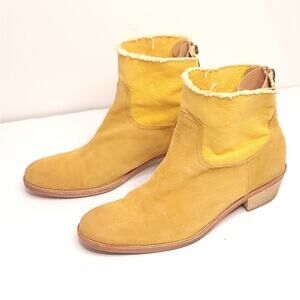 Zadig & Voltaire Teddy Yellow Suede Leather & Canvas Ankle Boot Booties Shoes 38