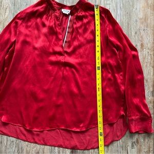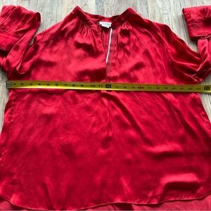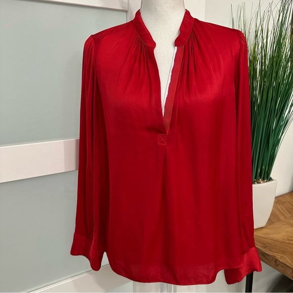 Zadig & Voltaire Tink Satin V-Neck Long Sleeve Blouse SZ Large Red Designer READ