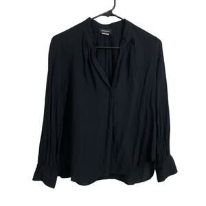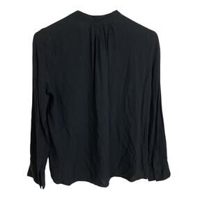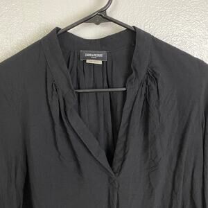 Zadig & Voltaire Tink Top Womens XS Black V Neck Blouse Long Sleeve Pleat Career
