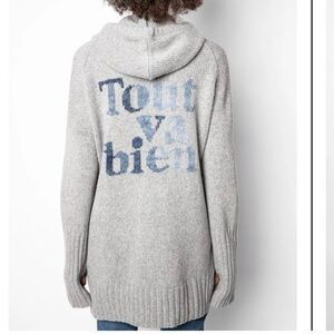 Zadig & Voltaire Tout Va Bien Cardigan Sweater M/L Grey Zip Front