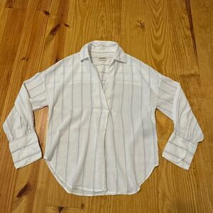 Zadig & Voltaire Travela Raye Tunic Blouse Vneck Striped Linen Blend VOLTAIRE LRG