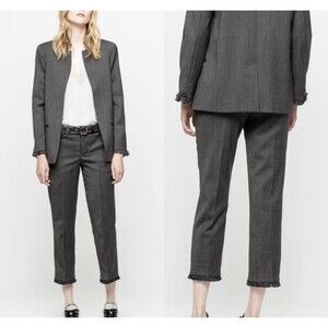 Zadig & Voltaire Trouser Women Size 40 US L Gray Posh Fringe Ankle Button Fly