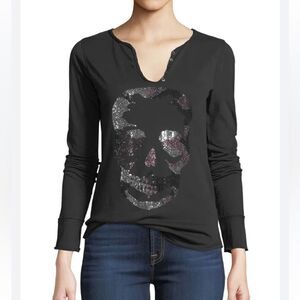 Zadig Voltaire Tunisien Skull Embellished Long-Sleeve Tee, NWT Medium