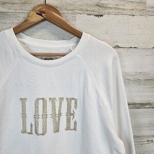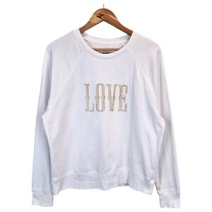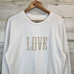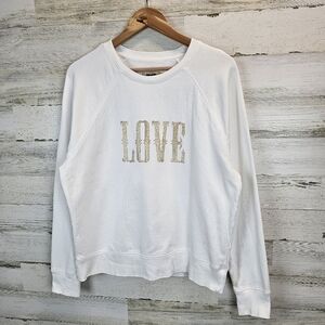 Keywords: Zadig & Voltaire, sweatshirt, cotton, LOVE graphic, glitter, white, casual, chic, comfortable, stylish, fashion, trendy, layering, unisex, high-end, designer, poshmark, wardrobe essential, statement piece, embellished, sparkle, cozy.