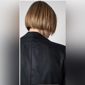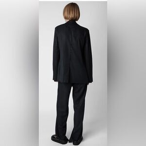 A classic black blazer with a subtle edge with Zadig wings on the back. Quiet Luxury style. Great for work and everyday! Simple, classic, minimalistic. Wear with ripped jeans and combat boots. Ptp 22”, length 29”. Questions? Leave a comment below!