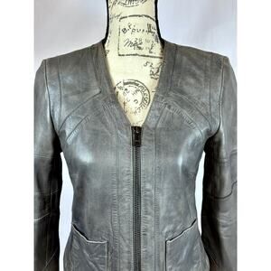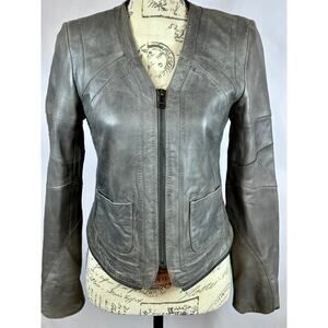 Zadig & Voltaire Vencia Cropped Collarless Lamb Leather Jacket Gray S