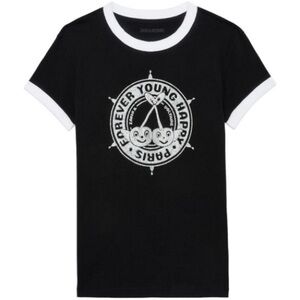 Zadig & Voltaire Walk Diamanté Insignia BC Blason Strass Ringer Tee Rhinestone