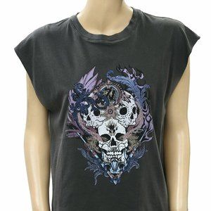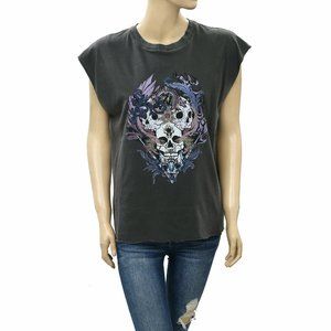 Zadig & Voltaire Weny Compo Skull Strass Tank Top Beaded Carbon S New