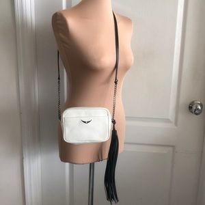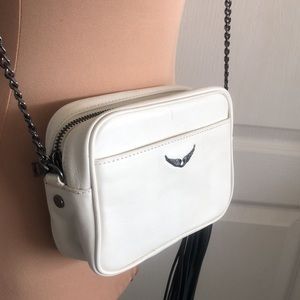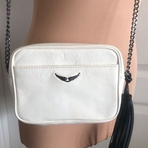 Zadig & Voltaire White Leather Boxy Small zip Crossbody purse wing accent