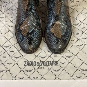 Zadig & Voltaire Wild Pilar Snakeskin Boots Brown & Blue Size 36