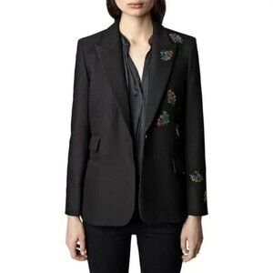 Zadig Voltaire Womens Blazer Size 34 Black Venus Strass Floral Casual