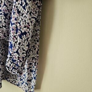 Zadig & Voltaire women's allover begonia print v-neck blouse, size extra small. This feminine blouse has flowy, oversized look with tiny ruffles along the neckline.