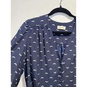 Zadig & Voltaire Women's Size Small Turin Silk Navy Blouse Button Front V Neck