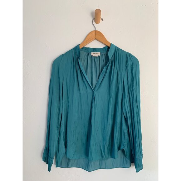 Zadig & Voltaire Women's Tink Satin Simple V-Neck Filament Blouse Sz XS