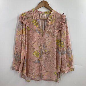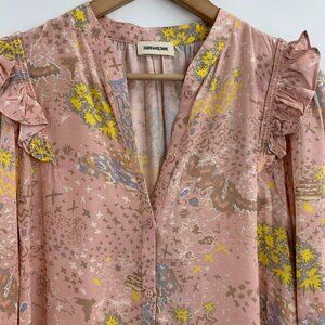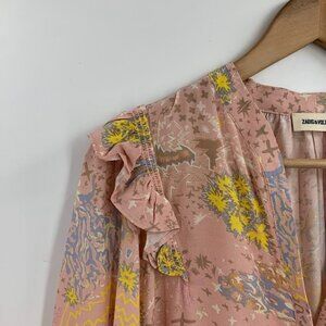 Zadig & Voltaire Women's Tygg V Neck Print Glam Long Rock Sleeve Blouse Size S