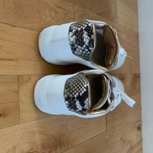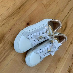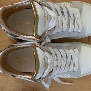 Zadig & Voltaire women's White/Gold leather sneakers with lightning bolt motif. These are EU size 39. I am a 7.5 and these were too snug to wear. These would be perfect for someone that is a size 7!