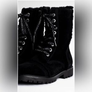 Edgy French Designer! Love these cozy combat boots for winter with shearling. Add Zadig logo shoelaces. Quality and comfort. Real black suede leather. TTS US 9. New. Questions? Leave a comment below!